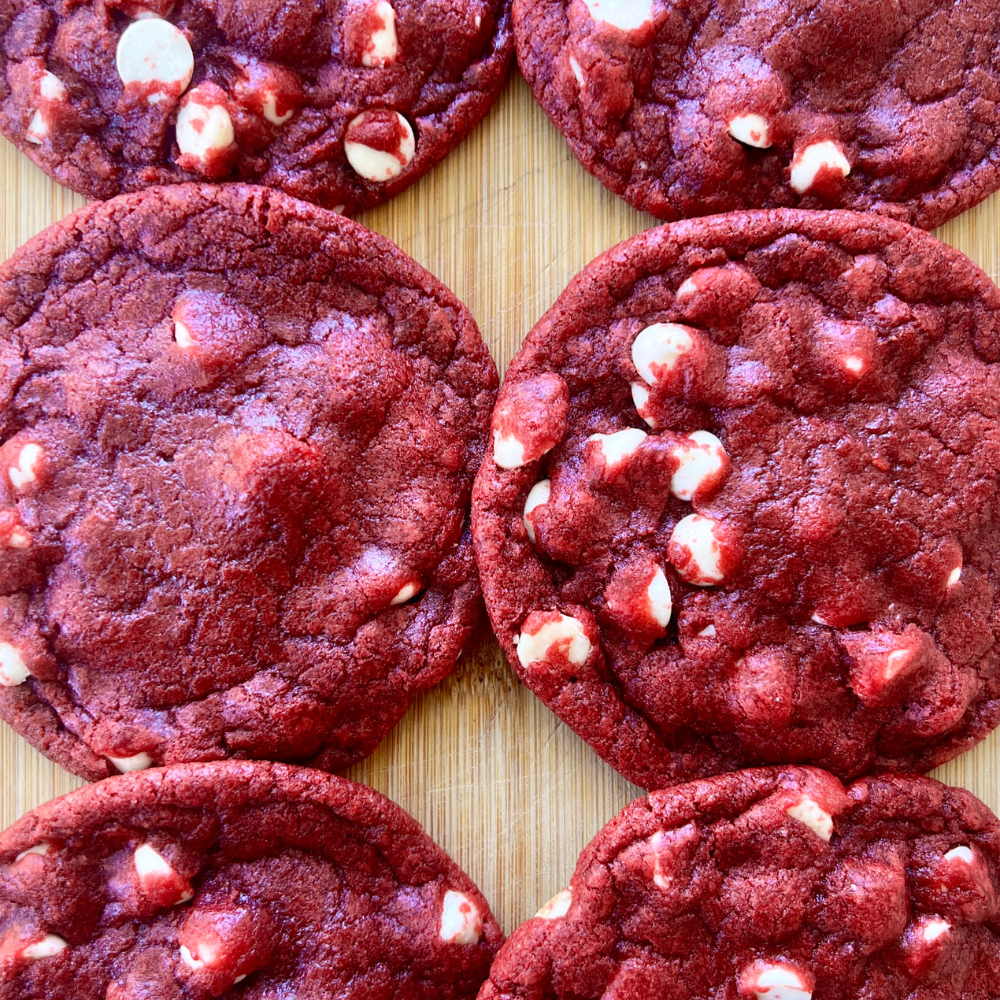 Satisfy your cravings with a 6 Pack bundle of our 2.5oz Red Velvet White Chocolate Chip Cookies!